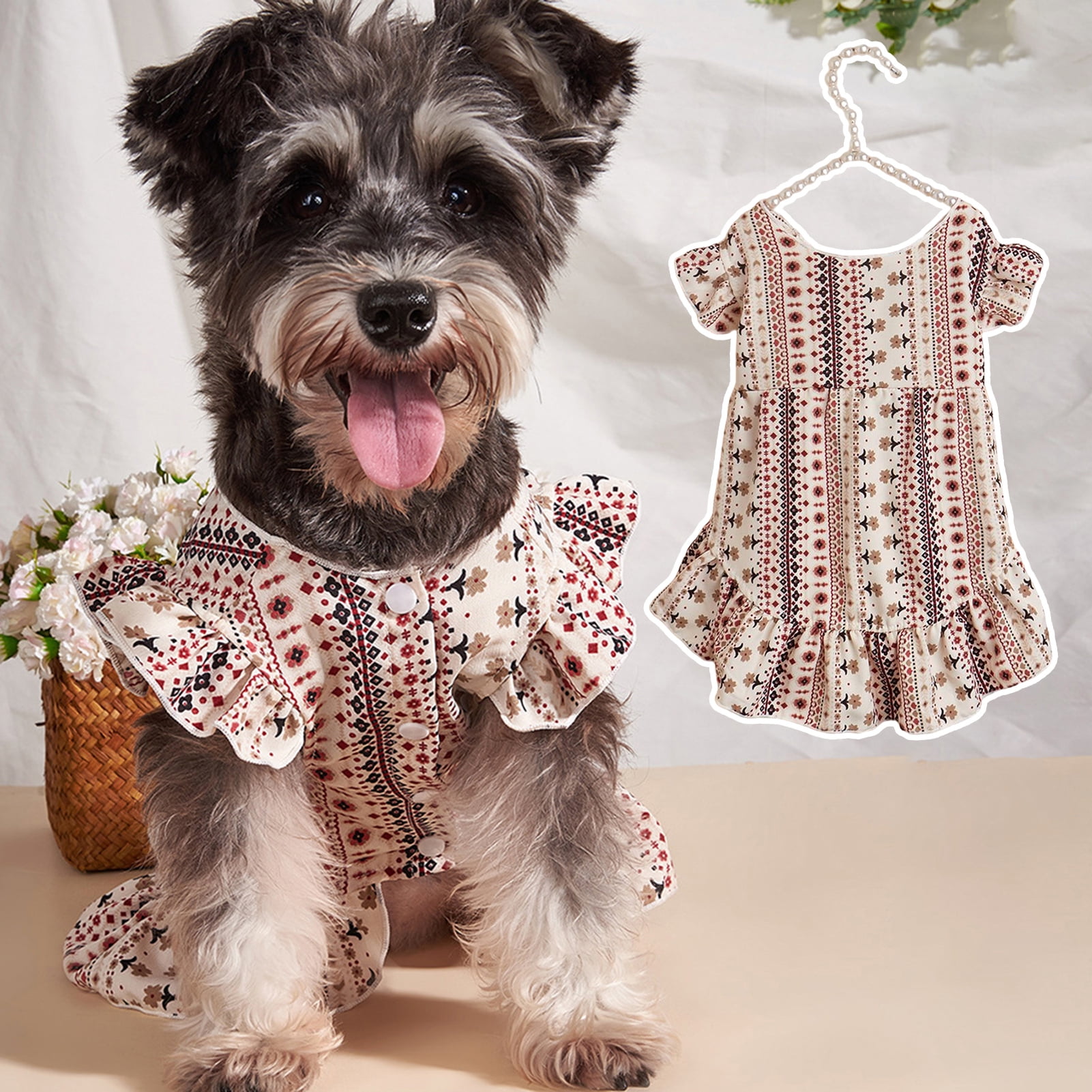 Shulemin Pet Dress Pet Skirt Ethnic Style Single Breasted Flying Sleeve Pet Vest Puppy Printing Clothes For Spring Walmart Com
